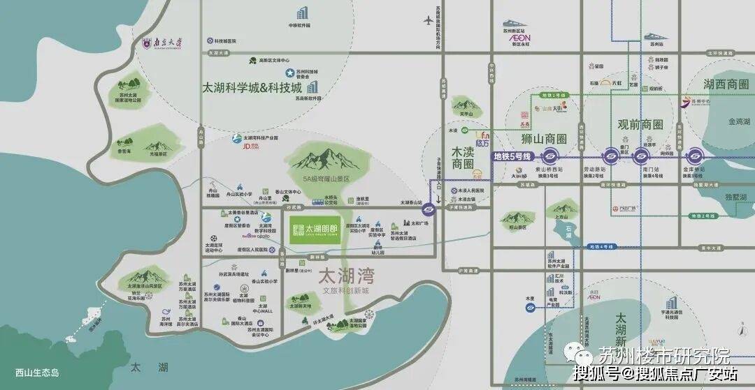 2、近年来狮山作为苏州大热板块,板块新房均价在4W+,板块内二手房价更是高达6W+、7W+,作为外溢板块,太湖湾板块配套醇熟,交通便利,绝对称得上是苏州置业优选之地。
