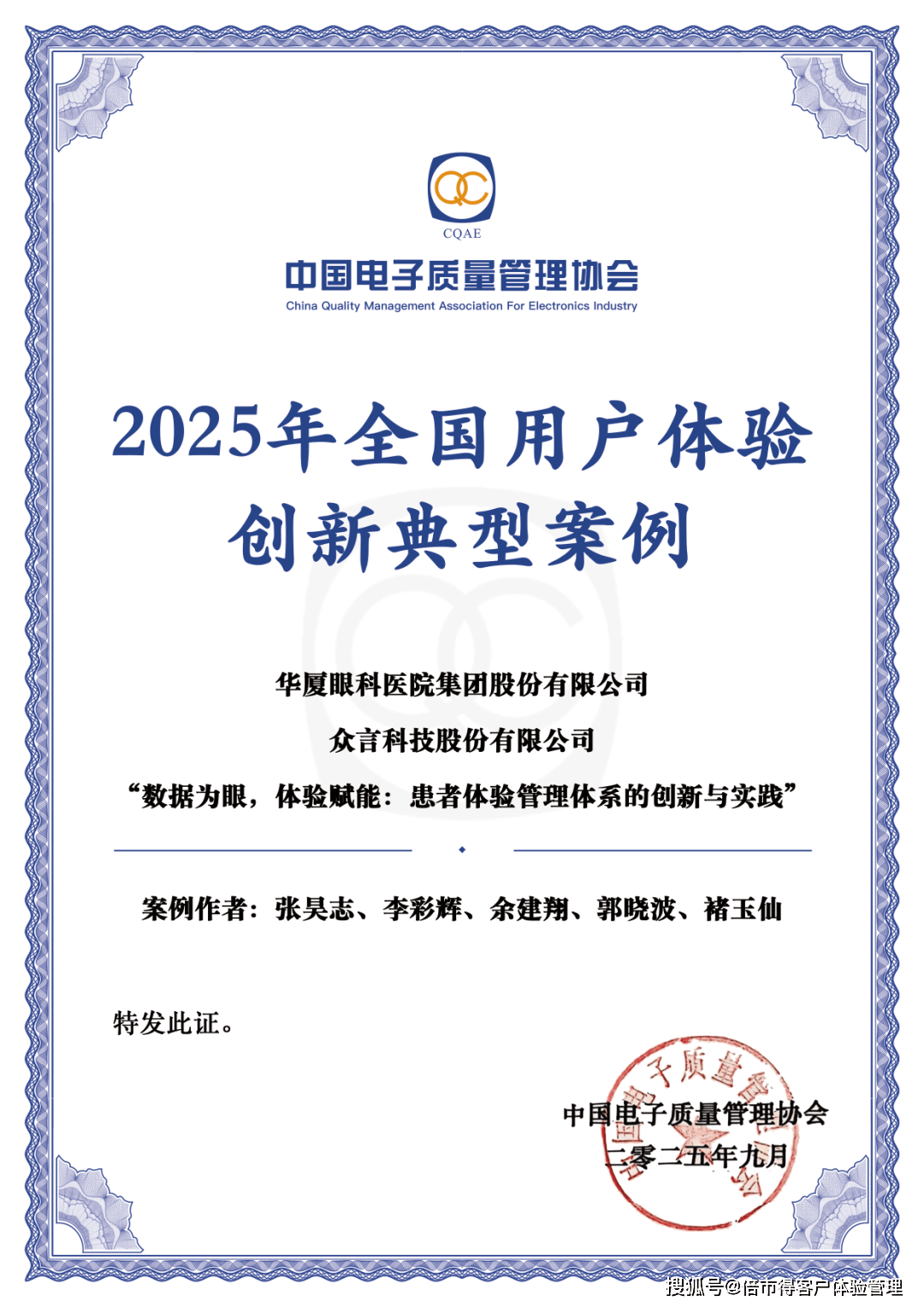 本期,我们就来分享下今年获评的案例之一:“数据为眼,体验赋能——华厦眼科患者体验管理体系的创新与实践”。