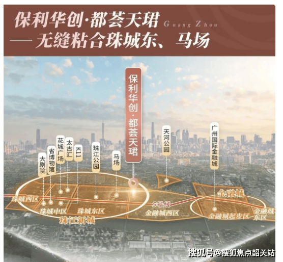 保利华创·都荟天珺所处的珠城东板块,紧邻珠江新城核心区,与珠城东区仅隔一条马路,处于华南快速和黄埔大道交汇处,同时衔接金融城、琶洲等新兴核心商务区,形成“黄金三角”发展格局。这一板块作为珠江新城东拓的重要节点,承载着延伸核心区功能、提升区域居住品质的重要使命。