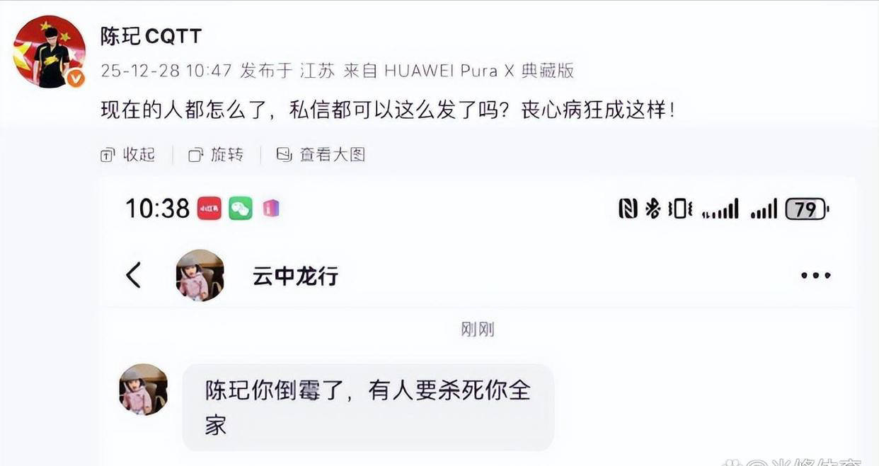 值得一提的是,2025年12月底,乒乓球奥运冠军陈玘曾公开表示收到极端球迷发来的死亡威胁私信,事后该球迷已被行政拘留。同时,樊振东多次发声呼吁体育圈“饭圈”式激烈粉丝行为,呼吁环境理性和平和。(米修体育报道)返回搜狐,查看更多