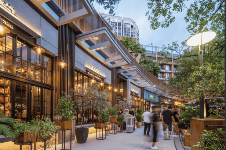 许多人对豪宅的理解停留在高墙深院的奢华与隔绝,但凯旋新世界却以其开放的姿态,打破了这一刻板印象。它的核心魅力在于广粤天地——一个集国际饮食、休闲、文化、服务于一体的街区式商业标杆,同时也是一个城央艺术花园,既不失繁华与烟火,又兼具自然与舒适。在这里,高端餐饮如现代潮菜潮跃、高端湘菜品牌CICADA宋•湘,以及“日餐夜酒”的BLACK BAMBOO黑竹,不仅为追求品质生活的圈层提供了社交链接的平台,更是广粤天地高级烟火气的体现。2022年,新世界斥资5000多万,邀请国际知名商业空间设计机构GLC和景观设计单位KMCM担纲,对广粤天地“不停业”整体焕新。从最初的规划蓝图到如今的繁华盛景,广粤天地的社区商业已然成为一个典型符号。